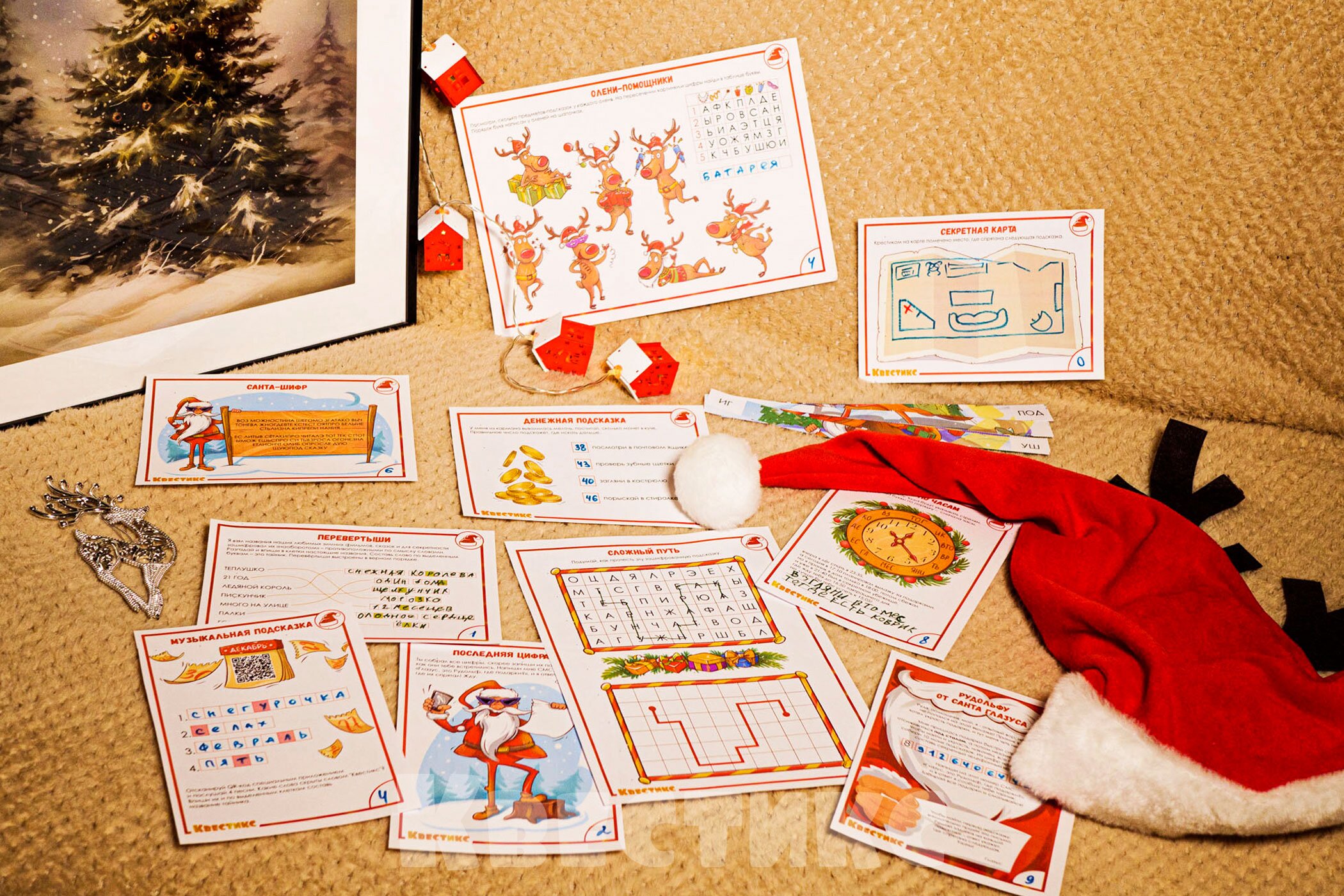 Вы всегда можете сделать фанты частью квеста для пущего веселья и активного перерыва. Дети будут рады повыполнять задания во время поисков нерадивых преступников, укравших новогодние подарки в квесте Санта Глазус.